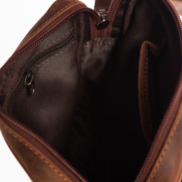 Δερμάτινο τσαντάκι χιαστί κατασκευασμένο από μοντέρνο δέρμα λαδιού εξαιρετικής αντοχής.