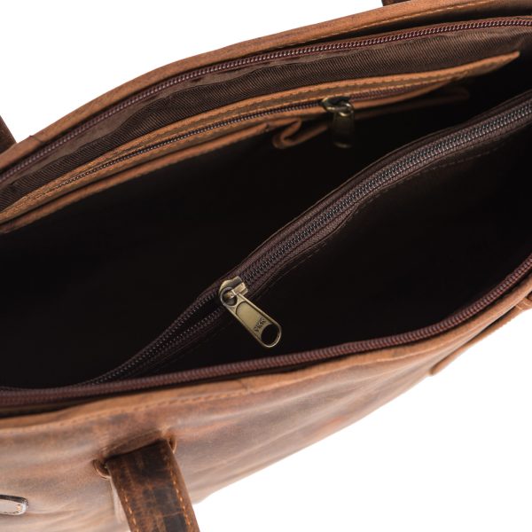 Τσάντα ώμου κατασκευασμένη από μοσχαρίσιο δέρμα λαδιού εξαιρετικής αντοχής. Διαθέτει δύο διαμερίσματα και πολλές επιπλέον θήκες.